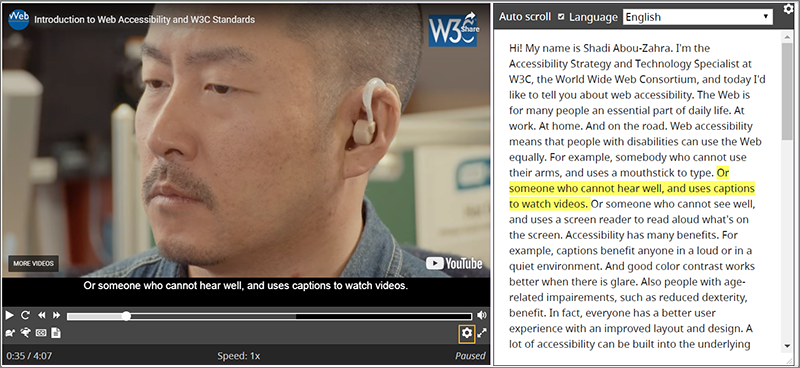 If you don’t have captions, you’ll need transcription of the audio information. That’s addressed in another page of this resource: Transcribing Audio to Text.