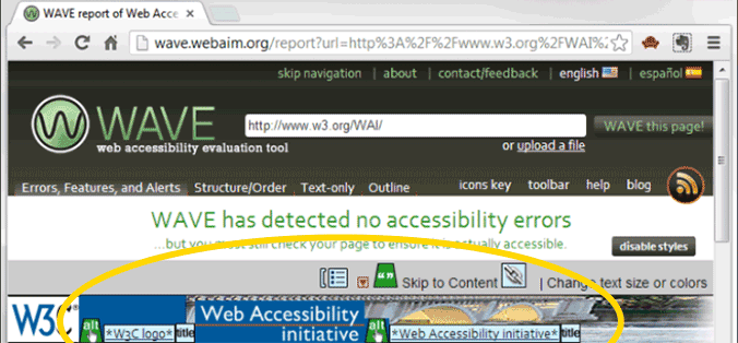 For information on easy checks for web accessibility, visit w3.o-r-g/W-A-I/evaluation.