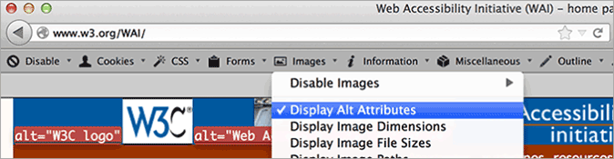 While it is useful to have an experienced screen reader user check web pages, anyone can get an initial idea of potential accessibility barriers for screen reader users and others who change the way the page is presented. The steps below show you how to disable images, disable styles for how the page is usually displayed, and linearize the page to check the page structure.