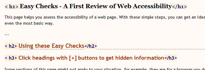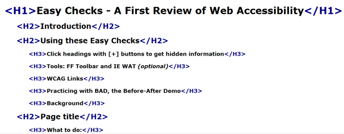 While the other checks on this page focus on specific success criteria in WCAG, this check is more broad. It helps you understand how some people "see" the web page differently. For this basic structure check, you look at the web page without images, styles, and layout.